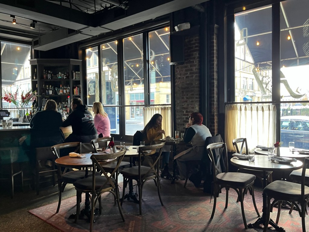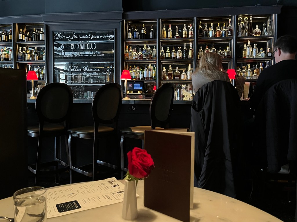 The front of the restaurant is a glass atrium with a tiny round corner bar, which is great if you’re sitting up front and want your Bloody Mary or Salty Meg (vodka and grapefruit juice) topped up. We once sat in the atrium during a holiday brunch and there was a three-piece band, which made it very jazz enjoyable. Also making mornings enjoyable is their $75 Sunday Brunch Cocktail Fountain for parties of 4-6; choose from unlimited Aperol Spritz, Espresso Martini, French Blonde, or Blood Orange Paloma. It’s your passport to day drinking.